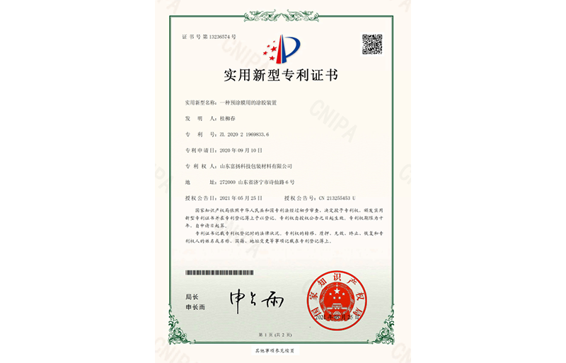 山东富扬科技包装材料有限公司坐落于历史悠久的“孔孟之乡,运河之都”—济宁市境内,由富扬投资(香港)有限公司在山东济宁独资设立的一家集研发,生产,销售为一体的高科技企业。主要生产激光全息(镭射)转移卡纸,激光全息(镭射)复合卡纸,铝箔复合金银卡纸,激光全息(镭射)定位专版防伪纸,特殊微压纹路技术等防伪新型包装材料。产品广泛应用于:香烟软包、硬包及香烟衬纸,酒类、药品、高档日用品、化妆品、礼品、食品等包装纸。目前公司业务范围遍布全国各地及东南亚、中东、欧洲等国家和地区,为国内大的转移(复合)金银卡纸生产基地之一。山东富扬科技包装材料有限公司坐落于济宁国家高新技术产业开发区,成立于2012年,是由香港富扬投资有限公司在济宁创办的一家集研发、生产、销售全息镭射膜与纸为一体的高新技术企业。公司占地105亩,总投资10.5亿元,注册资金1000万美元,并设有国际标准化恒温恒湿的无尘生产车间及科技研发中心。 公司主要生产激光全息(镭射)转移膜、卡纸,激光全息(镭射)复合膜、卡纸,铝箔复合卡纸,激光全息(镭射)定位专版防伪膜、卡纸,特殊微压纹路技术等防伪新型包装材料。膜产品年产量达4亿平方米、纸类产品4万吨,年产值达10亿元人民币。公司于2013年公司受邀参加第八届北京国际印刷技术展览会,在展会上展示了“铂金浮雕”技术应用产品。在作为国际级别、具权威性、能 代表当今印刷技术的北京国际印刷技术展览会上,富扬科技得到了国内外同行业的高度评价。 公司所生产的产品广泛应用于香烟、酒类、药品、高档日用品、化妆品的镭射防伪包装。销售网络现已辐射全国各地,并与洋河集团、河南中烟、湖北中烟、江苏中烟、广东中烟等建立了稳固的业务合作关系,构建起辐射全国的产品销售体系。